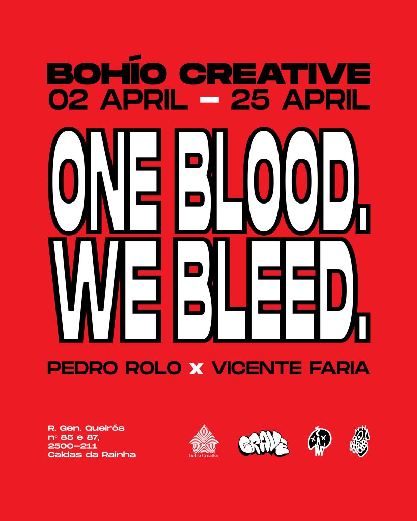 A Bohio Creative apresenta a exposição One Blood, We Bleed, uma nova e envolvente exposição do coletivo GRAVE, patente de 2 a 25 de abril. A inauguração inaugurou esta quinta-feira, 2 de abril, como proposta de convite à comunidade a interagir diretamente com os artistas e as suas obras.
